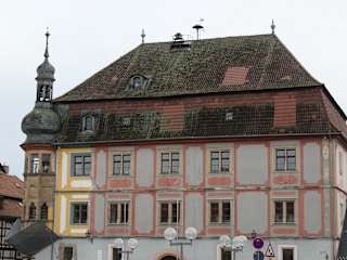 Zur Zeit ist das ansonsten durchaus sehenswerte Rathaus von Bad Königshofen (Bad Königshofen im Grabfeld / Bayern) nicht unbedingt ein empfehlenswerter Reisetipp, da Sanierungsarbeiten am Rathaus durchgeführt werden und dazu Gerüste mit Wetterschutzdach aufgebaut wurden, was den Blick auf das Rathaus zumindest stark einschränkt. Wie es heißt, sollen sich diese Bauarbeiten voraussichtlich bis Mitte 2027 hinziehen.