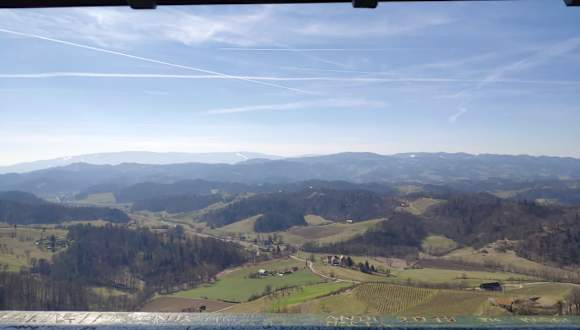 Ein wunderschöner Rundwanderweg mit lehrreichen Schautafeln ( Wein ) zwischen hügeligen Weingärten bei Spielfeld, mit einem Highlight, nämlich die Aussichtswarte Plac in Slowenien. Der Rebenwanderweg hat es in sich, bergauf und bergab, und ist über 12 km lang. Etwas Kondition ist erforderlich. Ich habe dafür ca. 4 Stunden benötigt. Er ist eigentlich gut beschildert, aber man muß doch aufpassen, daß man keine Abzweigung ( z.B. Georgiberg ) versäumt. Leider wandert man auf 80 % asphaltierten, aber wenig befahrenen Güterwegen, fast kein Schatten. Man geht vom Bahnhof Spielfeld über die Bahnüberführung, beim Schloß den Graßnitzberg hoch zu den Weinbergen an vielen Buschenschänken vorbei. Oben angekommen ( Achtung Abzweigung ! ) gehts wieder steil hinunter zum Talboden und wieder hinauf zum Buschenschank Polz. Von hier kommt man in ca. 20 Minuten über eine steilen Weg durch den Wald zur Aussichtswarte Plac in Slowenien, die auf 510 m hoch liegt. Oben erwartet uns ein wunderschöner Ausblick auf das slowenische und südsteirische Hügelland. Zurück geht es wieder beim Polz vorbei, hinunter nach Oleg mit Blick auf den slow. Autobahngrenzübergang bei Sentilj um dann wieder in einer großen Schleife zum Ausgangspunkt zurückzukommen. Höhenunterschied dürften ungefähr 450 m insgesamt sein. Diese Wanderung hat mir gut gefallen.
