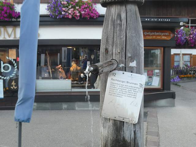 Früher gab es die Brunnennachbarschaften. Hier durfte jede Nachbarschaft Wasser schöpfen, für sich und das Vieh. In Oberstdorf gab es 16 davon. Ein Brunnen war der Rechberge. Der Brunnen steht direkt beim Heimatmuseum.
