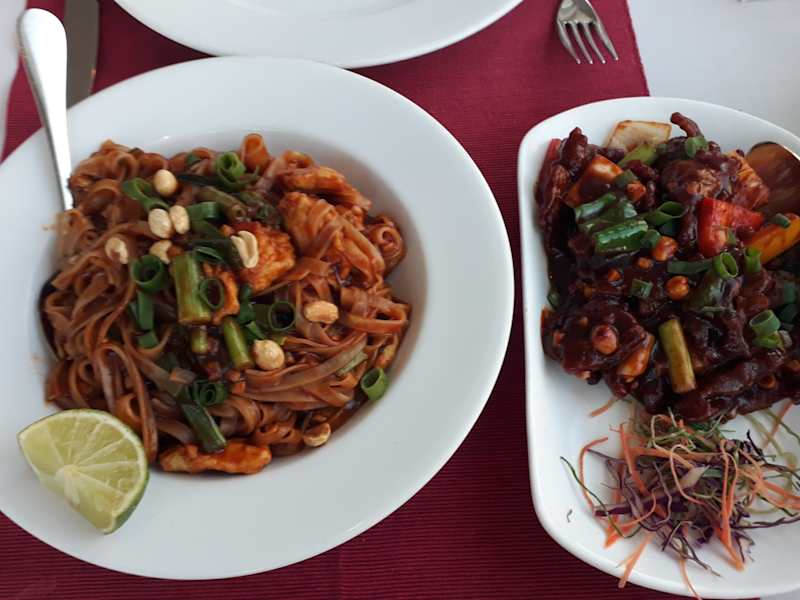 Das Red Ruby ist ein asiatisches Restaurant mit chinesischer, indischer, thailändischer und japanischer Küche. Die Speisekarte ist so umfangreich, dass wir sehr skeptisch waren weil so etwas eigentlich nur funktionieren kann, wenn man tatsächlich auch Köche der jeweiligen Länder beschäftigt. Wir waren zweimal dort essen und haben sowohl Chinesisch als auch Indisch und Thai probiert. Während das chinesische und indische Essen sehr gut waren, waren die Thaigerichte ein Reinfall. Neugierig nachgefragt haben wir erfahren, dass es in der Küche angeblich zwei indische und zwei japanische Köche geben soll. Sehr lecker waren die Cocktails und die Lassi. Fazit: Es kommt darauf an was man bestellt und/oder ob man sich mit der traditionellen Thaiküche auskennt. 9, DIONYSIOU SOLOMOU STREET https://www.facebook.com/people/RED-RUBY-ASIAN-Restaurant/100063725780354