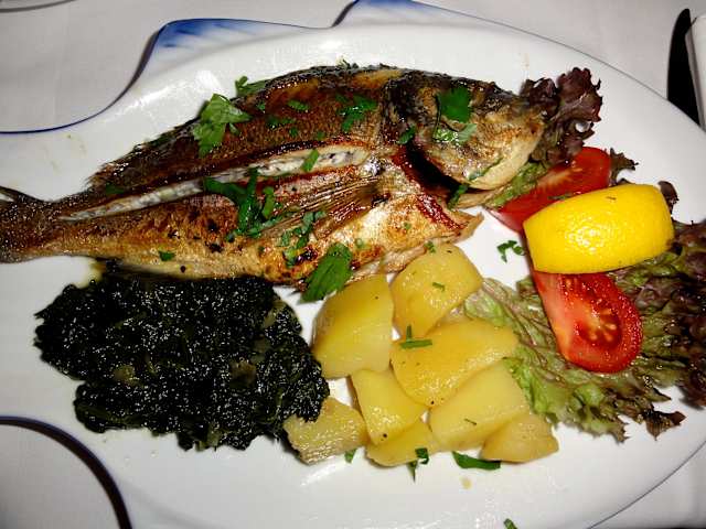 Ich besuchte das Restaurant „Achilleus“, unweit der zentralen U-Bahnstation „Schwedenplatz“ gelegen, an einem Freitagabend und der Grund meines spontanen Entschlusses war die handgeschriebene Speisekarte vor dem Restaurant, die unter anderem mit frischem Wolfsbarsch und Goldbrasse lockte. Ich entschied mich für die „Dorade mit Erdäpfeln und Spinat“ und hatte bis zum Essen ausreichend Gelegenheit, das Restaurant in Augenschein zu nehmen. Unter einer hohen Gewölbedecke stehen im Achilleus zahlreiche „lauschige“ Tische für die Gäste zur Verfügung und das mediterran-griechische Flair ist bewusst angenehm sparsam gehalten. Der Service beriet mich zu Wein und Essen hervorragend und die Dorade, die nach einer angemessenen Wartezeit auf meinem Teller landete, war ein Gedicht – außen kross gebraten und auch die „inneren Werte“ überzeugten mich: Eindeutige Frischware - das ist eher selten so! Den Abschluss machten ein griechischer Kaffee in der Süßstärke „medium“ und ein ordentlicher Metaxa, der in einem richtig heißen Glas serviert wurde. Wenn ich hier nicht nur sporadisch im Urlaub wäre, könnte das „Achilleus“ ohne Mühe mein ganz spezieller Favorit werden – authentische griechische Küche ohne Schnörkel und „Urlaubs-Wörterbuch“ auf der Papierserviette - in diesem Restaurant bekommt der Gast gestärkte Leinenqualität angeboten. Der Besuch ist auf jeden Fall einen Umweg wert und ich kann dieses Restaurant nur wärmstens empfehlen, wenn es statt um „Fleischmenge zum Dumpingpreis“ eher um Qualität geht.