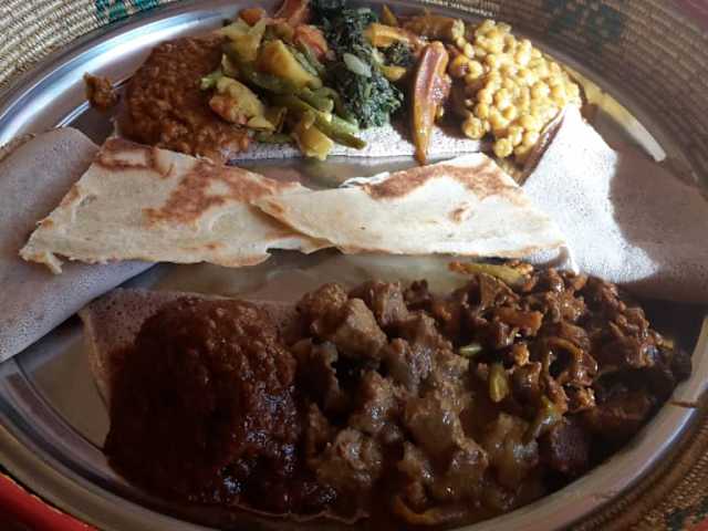 Wer typisch afrikanisch möchte, ist hier in der Schwetzinger Straße 43 in Mannheim richtig am Platz. Das Lokal ist sehr schön eingerichtet und macht einen gemütlichen Eindruck. Das Lokal hat ab 17 Uhr geöffnet und keinen Ruhetag. Die Betreiber, ein jungen Paar aus Eritrea sind sehr freundlich und zuvorkommend. Bitte bringen Sie ein wenig Zeit mit, denn die Speisen werden frisch zubereitet und das dauert seine Zeit. Nachdem in Afrika traditionell mit der rechten Hand gegessen wird, sollte man das auch mal ausprobieren, auch wenn es natürlich auch Besteck gibt. Die Speisen werden auf afrikanische Art und Weise dargereicht. Die Qualität ist prima und der preis fürs Essen angepasst. Einzigst die Weinpreise sind vollkommen überteuert - deshalb Abstriche (6,20 Euro)!