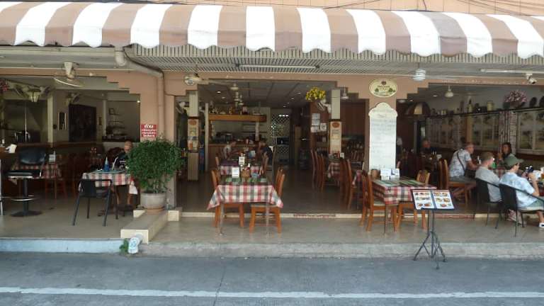 Eins von vielen guten deutschen Restaurants in Pattayas Ortsteil Naklua, gelegen in der Soi 33, wo ehemals "Bei Gerhardt" war. Obwohl weit (50m) in der 33 liegt ist es gut besucht und bietet eine sehr angenehme Atmosphäre. Bei wechselnden Tagesmenüs (2) kann man zwischen Suppe oder Salat und beim Nachtisch bei Eiscreme oder Kaffee wählen. Die Speisekarte gleicht einer Zeitschrift. Natürlich bekommt man auch Thaifood, auch sehr lecker. Eins mit Abstand der besten Restaurants in der Gegend. Das Preis-Leistungsverhältnis stimmt und der Service ist ausgezeichnet, einige sprechen etwas deutsch. Zu den Weihnachtsfeiertagen sowie Silvester/Neujahr wird ein reichliches 5-Gänge Menü geboten, Vorbestellung nötig. Wenn man hier länger verweilt und man zwischendurch wieder was deftiges zum essen möchte ist man hier richtig. Geöffnet von 10:00 bis 01:00 In der gleichen Soi befindet sich noch der "Hirschgarten" und die "Golden Orchidee", extra Tipp, alle 3 sind unter deutscher Leitung.