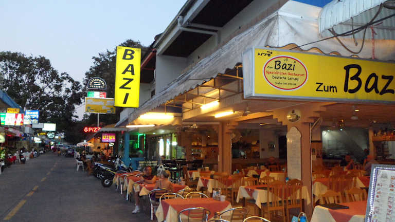 Die Ecke entlang der Naklua Road in Nordpattaya ist ist gut bestückt mit europäischen Restaurants,davon werden viele von deutschen Landsleuten betrieben. In der Soi 33 in Naklua ist z.B. das Restaurant Bazi,von einem Deutschen betrieben,indem ich nur positive Erfahrungen gemacht habe.Vor Jahren war hier schon mal Gerhard,eine Institution dort in der Ecke,dessen Pachtvertrag aber abgelaufen war.Der Nachfolger Bazi hat das gesamte,damals schon gut geschulte Personal übernommen,was sich heute noch positiv auswirkt.So verstehen einige Mitarbeiter auch ein bisschen deutsch.Das Angebot an Speisen ist breit gefächert und der deutsche Teil ist riesig.Aber auch asiatische und einheimische Speisen sind in grosser Auswahl vorhanden.Auch preislich liegt der Bazi am unteren Level,die Qualität ist absolute Spitze.Ich habe jetzt fast eine Woche dort gegessen und auch als sehr Kritischer Gast muss ich sagen : jedes mal Spitze.Auch die Getränkepreise sind normal,das Publikum ist fast ausschließlich europäisch.Auch die Sauberkeit ist vorbildlich,das Personal flink und freundlich. Das gesamt?e Speisesortiment kann auf der Webseite angesehen werden.