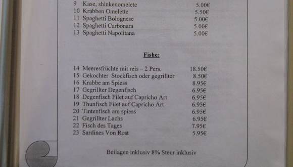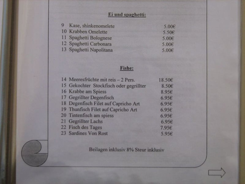 Die Snack-Bar Restaurante Bilheteira liegt direkt am Kirchplatz. Außen sind etwa sechs Tische unter großen Schirmen. Im Innenbereich findet man auch noch mal 6 bis 8 Tische. Wenn es das Wetter erlaubt, unbedingt draußen Essen. Die Speisekarte ist in mehreren Sprachen, auch in deutsch. Übersetzung manchmal etwas verunglückt, aber man bekommt einen guten Überblick. Wir waren während unseres einwöchigen Aufenthaltes in Santa Cruz 4 x dort zum Essen und es hat uns jedes mal gut gefallen. Mit zwei Personen haben wir immer, je nach dem ob wir noch eine Flasche Wein hatten oder nicht, zwischen 20 und 30 Euro bezahlt. Man sollte unbedingt das traditionelle Brot von Madeira bestellen. Dies wird mit Knoblauchbutter heiß serviert und ist total lecker. Wer eine Vorsuppe nimmt (Tagesuppe = Gemüsesumme zu 1, 50 € oder Tomatensumme mit Zwiebeln -passiert - mit verlorenem Ei zu 2, 50 €) sollte sich von dem Brot noch etwas aufbewahren, weil es auch sehr gut zu den Suppen schmeckt. Die Hauptgerichte kosten alle zwischen 5, 50 € und 8, 00 €. Gute Qualität und man wird auch satt. Empfehlen können wir den Degenfisch Espada. Als Filet gibts ihn mit gebratener Banane. Auch der Lachs ist gut. Man kann statt Kartoffeln auch Pommes bekommen. Gut auch der Grillteller mit verschiedenen Fleischsorten und das Pfeffersteak. Das Hühnchenfilet mit Soße war nicht ganz so toll, weil das Fleich so zerfezt war, aber vielleicht war es eine Ausnahme. Geschmacklich aber o. k. Ein Renner ist das Stone-Steak. Dies wird auf einem heißen Stein serviert. Als Beilage dazu Pommes und gemischter Salat. Das Steak ist noch roh und man brät es sich auf dem Stein wie man es will. Man kann sich auch jeweils kleine Stücke schneiden, dann kan man schneller mit dem Essen anfangen. Das gute ist, dass es lange heiß bleibt, insbesondere wenn man draußen isst. Dazu gibt es drei kleine Schälchen. Eine mit Kräuterbutter, mit der man das Fleisch auf dem Stein bestreichen sollte. Zwei Schalen sind mit Soßen. Tip: Wers mag, kann die Zwiebelringe vom Salat auf dem Stein gut mitrösten. Wenn die Pommes abkühlen, einfach mit auf den Stein legen und wieder anwärmen. Ich war erstaunt, dass jemand auf Madeira auf die Idee mit dem heißen Stein gekommen ist. Der Inhaber ist älter und packt neben einer Servicekraft selbst mit an. Dem Alter nach ist die Frau, die in der Küche den Laden schmeisst, wohl die Ehefrau. Offensichtlich ein Familienbetrieb, den ich ruhigen Gewissens empfehlen kann. Nicht durch die Beschriftung "Snack Bar" abschrecken lassen. In das Lokal links neben an kann man auch gehen. In die übrigen Lokale im Fußgängerbereich von Santa Cruz sind wird deshalb nicht gegangen, weil die beiden Lokale am Kirchplatz von Santa Cruz gegen 20 Uhr immer voll waren und in den übrigen Lokalen praktisch nichts los war. Das hat uns dann abgeschreckt.