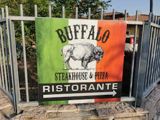 Das in den kleinen Teilort Colá ca. 3 km von Lazise im östlichen Hinterland befindliche Restaurant Buffalo ist bei Touristen sehr beliebt. Am Wochenende ist eine Tischreservierung ratsam. Die Einrichtung ist rustikal und erinnert ein wenig an einen Westernsaloon. Der Schwerpunkt der Speisen ist eindeutig Steak in verschiedenen Größen und Variationen. Es stehen jedoch auch Pizzen, Hamburger oder Schnitzel mit Pommes auf der Speisekarte. Die Bedienung war schnell und freundlich. Selbst bei einem kleinen von uns selbst verursachten Missverständnis wurde eine schnelle und außerordentlich wohlwollende Regelung seitens des Restaurants gefunden. Via Campo Rosso 1 37017 Colà VR, Italien https://buffalogrill-cola.eatbu.com/
