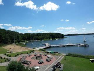 Nach einem Ausflug im Kaschubischen Freilichtmuseum lohnt sich ein kleiner Abstecher nach Gołuń zum Hotel Gołuń bei Wąglikowice. Hier kann man einen Kaffee oder was Kaltes trinken und dabei das herrliche Panorama auf den See genießen. Direkt unterhalb der Sonnenterasse gibt es sogar eine Wiese und einen Strandabschnitt. Laut der Internethomepage des Hotel Gołuń (leider ist diese nur auf polnisch) kann man dort auch Böotchen fahren oder auch einen Fahrrad ausleihen. Die Hügel- und Seenlandschaft der Kaschubischen Schweiz ist ein altes Zeugnis der glazialen Prozesse der letzten Eiszeit geprägt.