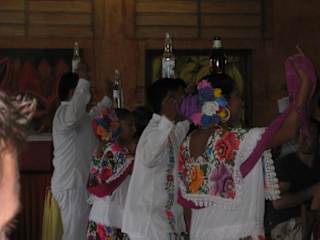 Nach unserem Besuch in der weltberühmten Ruinenstadt Chichen Itza, waren wir zum Mittagessen im obigen Restaurant. Das Essen war recht ordentlich und reichlich, aber für Mexiko nicht ganz preiswert. Da man hier einen so günstigen Platz besitzt, kann man es ja mit den Touristen machen. Trotzdem würden wir hier wieder zum Essen gehen, denn was man so auf einer Rundreise geboten bekommt, kann man nicht wissen. Interessant sind die freiberuflichen Tänzer und Tänzerinnen, die in mexikanischen Trachten zur schönen Musik ihr Bestes geben, mit Flaschen auf dem Kopf, die natürlich nicht herunter fallen dürfen.