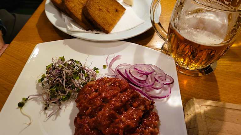 Am Rückweg vom Weihnachtsmarkt zum Hotel kehrten wir in diesem Lokal ein... Es ist ein typisch mährisches Bierlokal mit leckerem Speisen und zu einem günstigen Preis. Wir (3 Personen) hatten die Spezialität - Olmützer Brett mit Quargel und Co und mein Mann aß Beef Tartare die große Portion. Alles schmeckte suuuuper lecker und die Stimmung im Lokal war perfekt - kamen auch mit Einheimischen ins Gespräch. Sehr zu empfehlen !!!!!!!!!!!