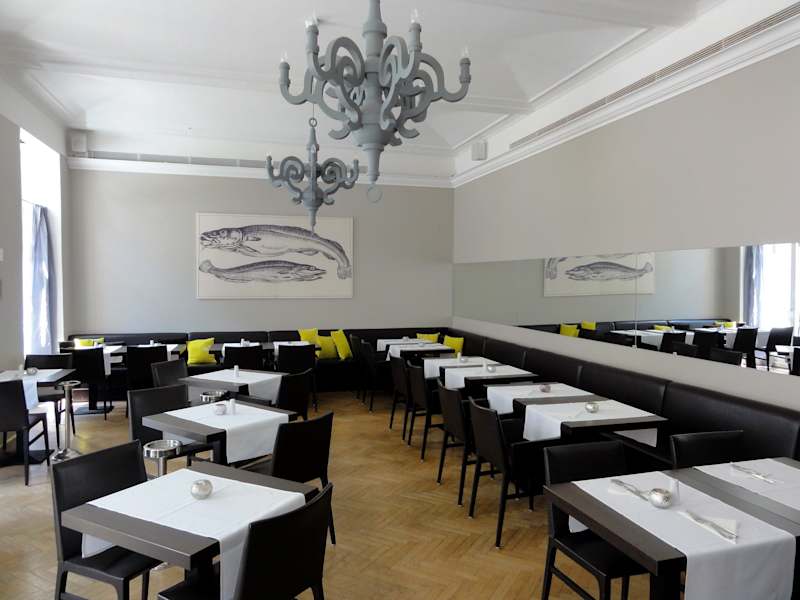 Das Restaurant „Ella´s“ am Judenplatz in der Wiener Innenstadt begeisterte mich bereits zum wiederholten Mal mit einem traumhaften Ambiente und einer leichten, griechisch inspirierten Mittelmeerküche. Im Gastgarten vor dem Restaurant sitzt man in der Sonne oder im Schatten einer großen Markise hinter Olivenbäumchen an weiß eingedeckten Tischen. Der Innenraum ist aber ebenso zu empfehlen und präsentiert sich ungewohnt strukturiert, fast kühl – „Architektur der Moderne“ mit klaren Linien und Farbakzenten. Den Service des „Ella´s“ erlebte ich immer freundlich zugewandt und die wechselnde Saison-Speisekarte umfasst alle Komponenten der Menüfolge, aus denen man nach eigenem Gusto frei zusammenstellen kann oder auch nur ein einzelnes Gericht wählt. Die Vorspeisen rangieren preislich zwischen 10 - 15 €, die Hauptgerichte um die 20 €. Ich wählte bei meinem letzten Besuch an einem warmen Mittag den „Ella´s Mezes Mix“ und erhielt zum Preis von 13,50€ einen ansprechenden Teller mit Kräutersalat, schwarzen Oliven, Sardellen, Zucchinichips, Octopussalat, Flogeres, Tarama, Tzatziki und Garnele – dazu frisches, knuspriges Bauernbrot – es war perfekt! Das „Ella´s“ gehört ohne Zweifel zur „gehobenen Gastronomie“ der Stadt und ist entsprechend frequentiert – zumindest abends scheint mir eine Reservierung sinnvoll zu sein. In Zusammenschau von exzellenter Küchenleistung, angenehmen Ambiente und einem engagierten Service kann ich den Besuch des „Ella´s“ ohne Einschränkungen empfehlen.