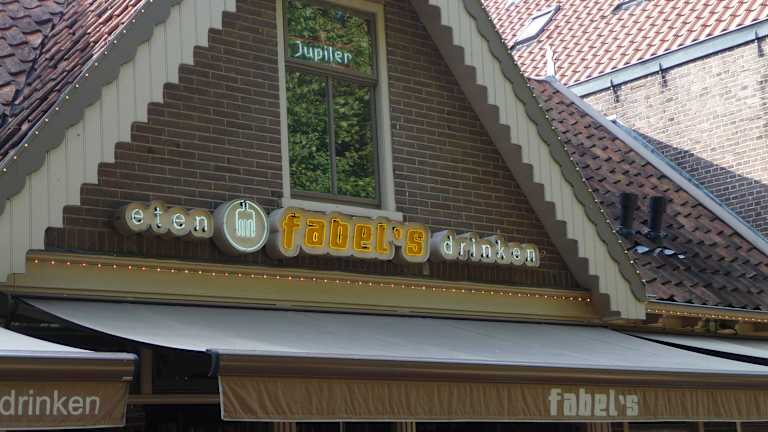 Fabel's ist mitten im Zentrum von Bergen, direkt am Platz rund um die Ruinenkirche. Man kann mit einen späten Frühstück starten, es gibt eine gute Mittagskarte mit kleinen Gerichten, Kaffee und Kuchen und eine sehr gute Abendkarte. Die Küche bietet eine Querschnitt durch die niederländische Küchen mit asiatischen Einflüssen. Am Abend ist besonders die Etagére mit verschiedenen Speisen für 2 Peronen zu empfehlen. Auch die Hausweine sind gut. Drinnen wie draußen sitzt man gemütlich zum Teil an längeren Tischen, mitunter auch mit anderen Leuten zusammen, also nichts für Menschen die nur für sich bleiben wollen. Tische kann man erst ab 6 Peronen reservieren, sonst einfach kommen und an der Bar solange warten, bis ein Platz frei wird. Das Preisniveau bewegt sich im mittleren Segment.