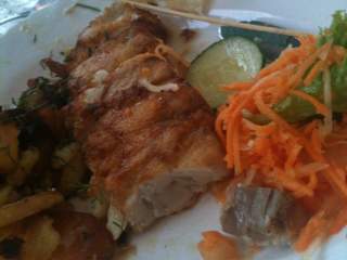 Wir haben als Hauptspeise Dorschfilet mit Speckbohnen und Bratkartoffeln (Tagespreis 11,50 Euro) genossen und uns zum "Dessert" noch einen Fischspieß geteilt. So gut und günstig haben wir noch nicht so phantastischen Fisch gegessen. Wir konnten bei herrlichem Wetter draußen sitzen und das muntere Treiben der flanierenden Urlauber beobachten. Bei FischersFritz (auf dem Weg zur Seebrücke ganz unten) gibt es nur Fisch. Nebenan ist ein Lokal, gehört anscheinend dem gleichen Inhaber, da gibt es dann Fleischgerichte. In beiden Restaurants waren schwer Plätze zu kriegen so voll war es. Eine ganz ganz nette junge Bedienung (hat noch nicht lange dort gearbeitet) hat sich rührend um alle Gäste gekümmert. Danke !!