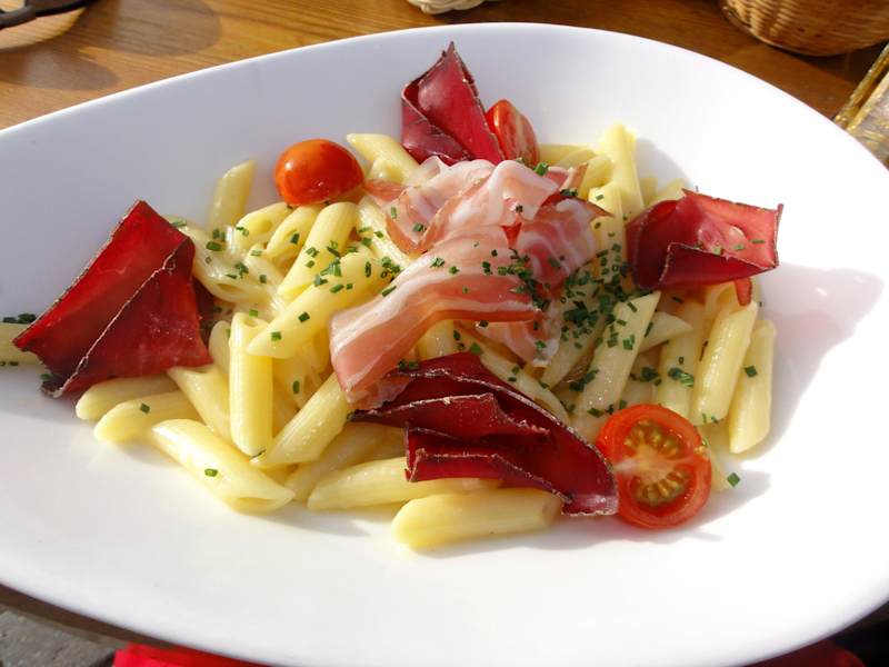 Auf dem Rückweg vom „Matterhorn“-Skigebiet kam ich nach einer langen Waldabfahrt in den Ortsteil „Furi“, um dort am Ortsrand spontan eine Mittagspause im Restaurant „Gitz-Gädi“ einzulegen, das sich im Hotel „Silvana“ befindet. Die aushängende Speisekarte machte mich neugierig und die windgeschützten Tische in der Sonne wirkten einladend. Der freundliche Service nahm meine Bestellung entgegen und brachte nach kurzer Zeit zunächst ein Brotkörbchen mit Butter und danach die bestellte Salatkomposition mit verschiedenen, marktfrischen Blattsalaten, Hobelkäse, Trockenfleisch-Streifen und Croutons, angemacht mit einer hauseigenen Senf-Vinaigrette – grandios! Die Salat-Askese schuldete ich dem geplanten, üppigen Fondue-Abend und beschloss daher, dieses Restaurant noch einmal ohne Kalorienverzicht zu besuchen. Auch am Abend war ich begeistert von einem ansprechenden Ambiente des Restaurants, dem zuvorkommenden und omnipräsenten Service und einer Küchenleistung, die von mir eine Bestnote bekommt. Die Abendkarte des „Gitz-Gädi“ umfasst ein breites Spektrum an Walliser Spezialitäten, Fleischgerichten, Pasta, Salaten und Suppen zu fairen Preisen und dürfte jeden Gast ansprechen. Einziger Wermutstropfen ist der etwas beschwerliche Weg von Zermatt, denn das Bergrestaurant befindet deutlich über dem Ortsniveau und es bedarf eines etwa 50minütigen Fußmarsches dorthin. Die Mühe ist aber durch eine wirklich authentische Schweizer Küche auf hohem Niveau und ein rundum stimmiges Ambiente mehr als gerechtfertigt.