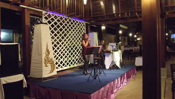 In unmittelbarer Nähe zum Railay-Village-Resort direkt am Strand befindet sich das Hotel Railay Bay. Das Restaurant in diesem Hotel liegt vorne am Strand und bietet neben Live-Musik und freundlichem Service, thailändische sowie International Gerichte in sehr guter Qualität. Wir wurden von der Sängerin der Live-Band ab dem zweiten Besuch mit einem freundlichen kopfnickenden Lächeln begrüßt. Wer gerne sein Lieblingslied gespielt haben möchte, die Live-Band freut sich und spielt gerne jeden Wunschtitel. Dieser freundliche Service macht es einem leicht Stammgast zu werden, gerade weil hier die Atmosphäre rund um stimmt.