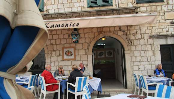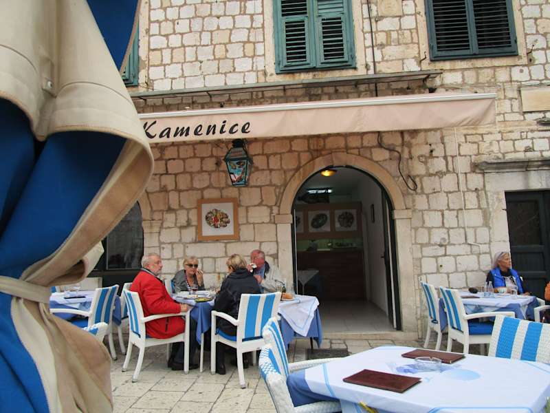 Das Restaurant Kamenice liegt sehr schön auf einem großen Platz in der Altstadt von Dubrovnik. Es werden hauptsächlich Meeresspezialitäten wie frischen Fisch, Kalamaries Muschelgerichte angeboten. Die Speisen sind alle frisch zubereitet und werden mit guten Beilagen zu schwarzer Reis serviert. Das Personal sprach leider kein Deutsch, dafür gutes englisch und in der Speisekarte war alles in deutsche Sprache zu lesen. Sehr lecker war unser Dessert ein typisch kroatischer Karamelpudding. Wegen der frischen Produkte können wir das Kamenice absolut empfehlen.