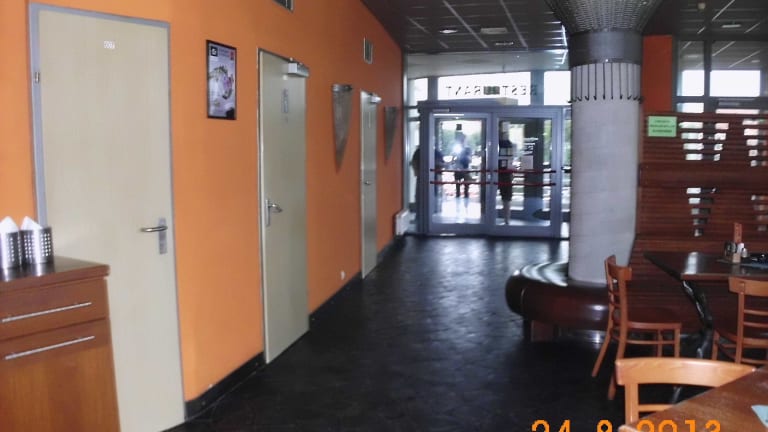 Super schönes,sauberes Restaurant mit super Verkehrsanbindung, die spitze Ecke Pod sidlistem / Klapkova. Man fährt mit der roten Metro C zum Süden von Prag bis Kobylisy, wenn man aus dem Zentrum kommt vorne aussteigen wo die Tram fährt , die Gaststätte liegt direkt über den Metro Ein/Ausgang, dann nach links gehen dann sieht man schon den Flachbau. Verkehrsanbindung Tram 3,10 und 17 bis Station Kobylisy und dann auf die andere Strassenseite gehen.Das Lokal öffnet um 11:00 Uhr,von 11:00 Uhr bis ca. 15:00 Uhr gibt es eine extra Mittagskarte die auch in Deutsch. Es ist ein Raucher-Lokal mit Nichtraucherzone. Die Gaststätte verfügt über mehrere Fernseher wo die aktuellen Sportereignisse übertragen werden und hat ca. 80-100 Sitzplätze, ideal für Vereine und größere Gruppen.Das Lokal wird überwiegend von Pragern besucht. Service ist nicht aufdringlich aber sehr aufmerksam. Speisen und Getränke sind gut und günstig, es schmeckt eigentlich alles. Wir waren schon mehrmals in Prag und für uns ist es ein MUSS dort essen zu gehen.