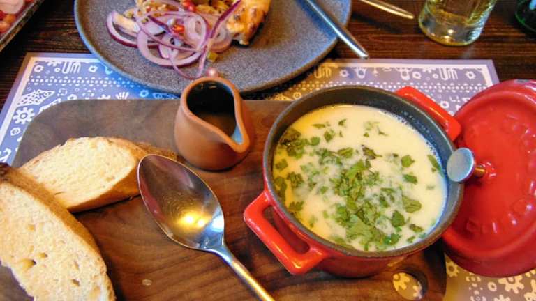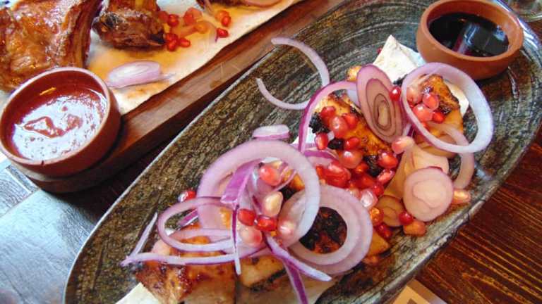 Das Restaurant Kudebi ist ein neues Restaurant im georgischen Ski-Resort Gudauri und ist innen sehr modern-rustikal mit georgischen Stilementen wie Teppichmustern an den Sitzbänken ausgestattet. Die Karte ist sehr übersichtlich und weist nur einige wenige Gerichte auf. Eine Tatsache, die eine frische Küche garantiert. Die Speisekarte ist neben Gorgisch auch auf Englisch und auch als "halal" ausgewiesen. Das Personal spricht gutes Englisch und ist besonders höflich! Da ich hier auf einerTagestour in den Großen Kaukasus von Tiflis aus unterwegs war und auf dem Rückweg hier mit einer Gruppe von insg. 18 Personen gespeist hatte, lief die Koordination in der Küche selbst ewas chaotisch ab. So kam der vegetarische Reis ca. 15 Minuten bevor die Vorspeise an den Tisch gebracht wurde, danach das Getränk und zum Schluß der Hauptgang. Die Preise sind europäisch und dmit in Georgien sehr hoch! So hatte ich für alles zusammen (Hähnchensuppe, Bier,Hähnchenschaschlik und Reis) ca. 65 Lari bezahlt = ca 20 €. Es liegt direkt an der "Haupt"straße in 4702 Gudauri. Tel. Nr +995 571 20 77 02. Geöffnet von 11:00 bis 23:00 https://www. facebook.com/kudebigudauri kudebigudauri@gmail.com