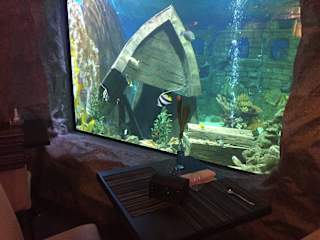 Eigentlich ist die Eigenwerbung nicht ganz richtig formuliert, denn es ist kein Unterwasserrestaurant, vielmehr ist es ein Restaurant mit einem Aquarium. Nun ja.... Leider hat sich das Restaurant nach unserem letzten Besuch sehr verändert. Angepriesen auf der eigenen Webseite als größtes privates Meerwasseraquarium, unisono vermarktet auf den Seiten des Gutscheingurus Jochen Schweizer, ist das Meerwasseraquarium einem Süßwasserbecken gewichen. Also von laMer in leTeich, quasi über Nacht. Hier wirbt man nun mit Nachhaltigkeit und klimaneutralem Fischbesatz. Allerdings sind wohl weder der sibirische Stör noch die Barsche aus dem Malawisee freiwillig nach Neuwied geschwommen. Alle anderen wahrscheinlich auch nicht, zumal einige Tiere sichtbare Verletzungen aufwiesen. Das Essen war guter Durchschnitt, nicht überragend, aber genießbar. Der Kellner vergisst Bestellungen und wer keinen Alkohol trinkt ist schnell vergessen. Was mich allerdings wundert, denn für eine Flasche Mineralwasser über sieben Euro zu verlangen ist kein Pappenstil. Wir werden sicherlich kein weiters Mal den Weg nach Neuwied auf uns nehmen, denn der Clou ist weg und in einen Teich schauen kann ich auch in der näheren Umgebung. Für das Essen alleine lohnt sich der Weg sicher nicht!