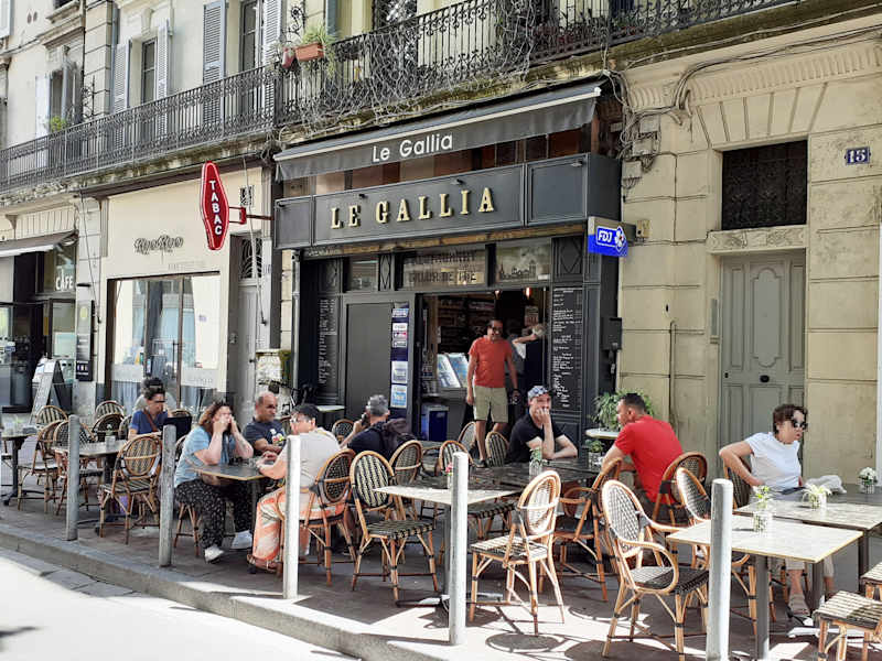 Das kleine Café am Place Carnot hat eine Terrasse mit Blick auf die Synagoge von Avignon. Ein nettes Plätzchen für eine kleine Pause zwischendurch.