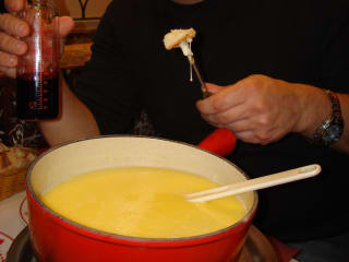 Dieses Restaurant ist ein ganz besonderes Erlebnis. Alleine die Möbelierung... Man muss über die Tische hinwegsteigen (das Restaurant ist schlauchförmig, daher sehr eng), so kommen sich die Gäste gleich näher. Man wählt zwischen Fleisch- und Käsefondue. Es gibt einen Aperitif vorweg, eine Vorspeisenplatte, das gewünschte Fondue und einen Obstsalat (aus der Dose, also nicht wirklich toll) als Dessert. Das beste sind wohl die Getränke, denn es gibt den Wein (rot oder weiß) aus Babyflaschen. Lustiger Laden!!!