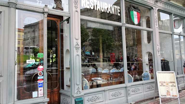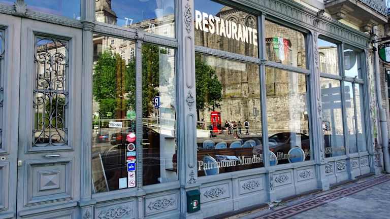 In den Räumen des alten Café Comercial an der Rua do Infante D. Henrique ist inzwischen ein italienisches Restaurant eingezogen, das „Mamma Nostra“. Die Einrichtung wurde erfreulicherweise übernommen und so speist man noch heute unter Kronleuchtern und sitzt königlich auf den hellblauen Stühlen – für das Ambiente gibt es die volle Punktzahl! Geboten wird ein klassisches italienisches Gastro-Programm mit Pizza (vom Holzofen!), Pasta-Variationen, Salaten, Fleisch- und Fischgerichten. Bei meinem Besuch um die Mittagszeit unter der Woche präsentierte sich das „Mamma Nostra“ mit einem freundlich zugewandten und aufmerksamen Service, meine „Spaghetti Neri al Gamberoni“ (12,90€) waren auf den Punkt gegart, gut gewürzt und richtig lecker. Das Glas „Vinho verde“ wurde mit 2,50 € berechnet und der Espresso danach kostete 1,10 € - in Anbetracht der Top-Lage in der UNESCO-Weltkulturerbe-Region „Ribeira“ kann man sich über diese Preise nicht beschweren. In Porto gibt es vergleichsweise wenige italienische Restaurants. Vom „Mamma Nostra“ im Brennpunkt des touristischen Ansturmes auf den Palácio da Bolsa und die Igreja San Francisco hatte ich eine schlimme „Touri-Abzocke“ erwartet und wurde mit tadelloser Küche, nettem Service und einer fairen Preisgestaltung in erinnerungswürdigem Ambiente angenehm überrascht – die Besuchsempfehlung ist aus meiner Sicht verdient.