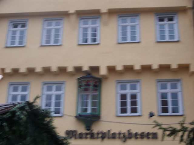 Das Restaurant "Marktplatzbesen" liegt unmittelbar am Marktplatz. Es ist zwar ein Restaurant welches ausschliesslich schwäbische Gerichte anbietet, ist aber kein " Besen " in Sinn der Württembergischen Besenverordnung. Die Besen werden in erster Linie nur von Winzern betrieben und bieten neben einfachen Gerichten nur ihren eigenen Wein an, sie dürfen auch nur wenige Wochen im Jahr öffnen. Hier aber ist jeden Tag geöffnet und es gibt auch Bier im Ausschank. Die Speisen sind als gut zu bezeichnen und auf sehr gutem Niveau. Das Restaurant hat leider nur ein begrenztes Platzangebot, das merkt man im Dezember, wenn der Weihnachtsmarkt abläuft. Aber wenn es nicht gar zu kalt ist, kann man auch draussen sitzen, da wird mit Infrarotstrahlern nachgeheizt. Die Bedienungen sind freundlich und die Weine sind gut. Wir hatten einen Zwiebelrostbraten mit Bratkartoffeln sowie Maultaschen mit Kartoffelsalat, da kann man überhaupt nicht klagen.