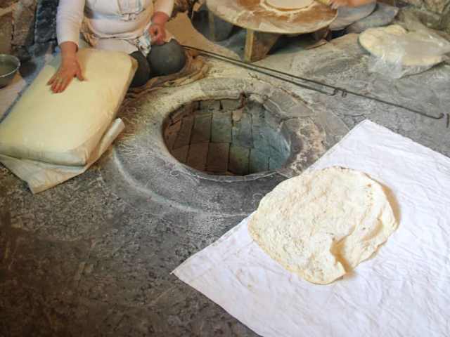 Nach der Besichtigung der Tempelanlage von Garni machten wir noch einen kurzen Spaziergang zum Restaurant Mer Ojakh (bzw. Merojakh) in der G.Zohrapi Straße. Das Mittagessen war im Restaurant Mer Ojakh bereits im Rahmen der Reise vorgebucht. Das Restaurant befindet sich inmitten eines herrlichen Gartens. Das Brot, das unsere Gastgeber servierten, kam traditionell aus Tonöfen die in der Erde vergraben waren. Lavash wird im Tonofen im Boden zubereitet, der von den Einheimischen "Tonir" genannt wird. Tonir-Herstellung ist ein Handwerk. Manchmal ist er mit Salz- und Sandschichten bedeckt, um ihn länger warm zu halten. Der Deckel ist in der Regel aus Papier oder Ton. Neben Brotbacken wird der Tonofen auch zum Kochen von Suppen oder Grillen verwendet, während es gleichzeitig das Haus beheizt. Die Lavash Backvorführung war ein netter Einstieg vor dem Mittagessen. Wir konnten zusehen, wie zwei einheimische Frauen das Brot (Lavash) backten. Dieses dünne Brot wird ohne Lebensmittelzusätze hergestellt. Das armenische Lavash ist ein weiches, dünnes Fladenbrot, das zu Kreisen geformt ist und in der Regel mindestens einen halben Meter lang ist. Der Teig wird über ein spezielles ovales Kissen gestreckt, das dann gegen die Wand des Tonirs geschlagen wird. Im Jahr 2014 wurde "lavash, die Zubereitung, die Bedeutung und das Aussehen des traditionellen Brotes als Ausdruck der Kultur in Armenien" in die UNESCO-Repräsentantenliste des immateriellen Kulturerbes der Menschheit aufgenommen. Das frischgebackene Brot mit Käse und Kräutern war sehr lecker und auch am ganzen anderen Essen gab es nichts zu beanstanden. Die Vor- und Hauptspeisen waren absolut top. Der Service der vorbestellten Speisen erfolgte zeitnah. Das Bedienungspersonal war sehr freundlich. Ich kann das Restaurant Mer Ojakh auf jeden Fall weiterempfehlen.