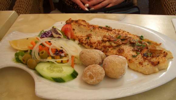 Es gibt die eingeschweissten Touristenkarten oder auch ein normale Speisekarte für höherwertige Speisen . Essen schmeckt sehr gut und die Leute sind total freundlich. Ausblick hervorragend. Bieten auch Hähnchen vom Grill zum Mitnehmen an . Ganzes Hähnchen 7,-- Euro. Schmecken sehr gut.