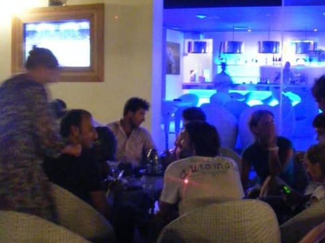 Eine echt nette und modern stylische Lounge Bar im blauen LED Design, wohl unter europäischer Leitung (man sah den europäischen Restaurantleiter über alles wachen!) im gemütlichen Innenhof in der Hafenpromenade New Marina. Wir hatten dort einen guten Rosé getrunken aus hübschen großen Weingläsern. Die Bar verfügt über eine Essenskarte die wir aber nicht näher betrachtet haben. Im Außenbereich konnte man sich über einen großen LED TV Musikvideos ansehen(oder auch nicht :) ) Die Musik ist eher David Guetta mäßig aufgezogen oder chillig. Es werden auch Fußballspiele übertragen. Die Kellner sind unaufdringlich, freundlich und fix. Kaum ein Gast der ohne Shisa auf seinem Sessel saß. Zahlen mit Kreditkarte ist völlig problemlos möglich.