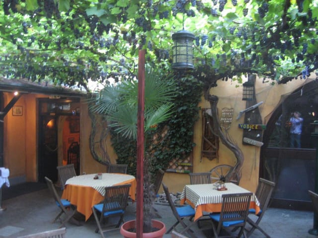 Gleich in der Nachbarschaft zum Dom und dem Rathausplatz befindet sich dieses ganz zentral gelegene Restaurant, in dem wir einen angenehmen Abend mit leckeren Fischspezialitäten und Meeresfrüchten verbracht haben, von denen die Speisekarte eine Vielfalt bietet, die für die istrische Küche repräsentativ sind Wir waren zu dritt und haben ganz unterschiedliche Fischgerichte (Vorspeisen und Hauptgerichte) ausprobiert. Da die Adria nicht weit entfernt ist, wird hier viel frischer Fisch angeboten. Die Portionen waren reichlich bemessen, die Qualität der frischen Fische und deren Zubereitung wirklich gut, und das Ganze zu vergleichsweise günstigen Preisen. Von außen kommt man nicht auf die Idee, dass das Restaurant einen schönen Innenhof als Sommergarten mit Mittelmeerflair hat. Der Innenhof ist von den langen Trieben eines 280 Jahre alten Weinstockes überdacht, ein tolles Gefühl, dort zu sitzen und direkt in die Trauben zu schauen, die über einem hängen. Über die Einrichtung, die an das Innere eines Schiffes erinnert, mit den üblichen maritimen Dekorationen kann man durchaus geteilter Meinung sein, wir fanden sie teilweise ein wenig kitschig und überladen. Das hat aber der Freude an diesem Abend wegen des leckeren Essens keinen Abbruch getan. Übrigens, auch Fleischliebhaber kommen hier auf ihre Kosten. Die Mitarbeiter im Service sprachen deutsch, konnten kompetent Auskunft geben zu den Gerichten, waren sehr aufmerksam, freundlich und hilfsbereit. Die Speisekarte hatte für alle Gerichte deutsche und englische Erklärungen, sodass man sich gut darin zurechtfinden konnte. Ein insgesamt gelungener Abend in einem Restaurant, das wir unbedingt weiterempfehlen können!