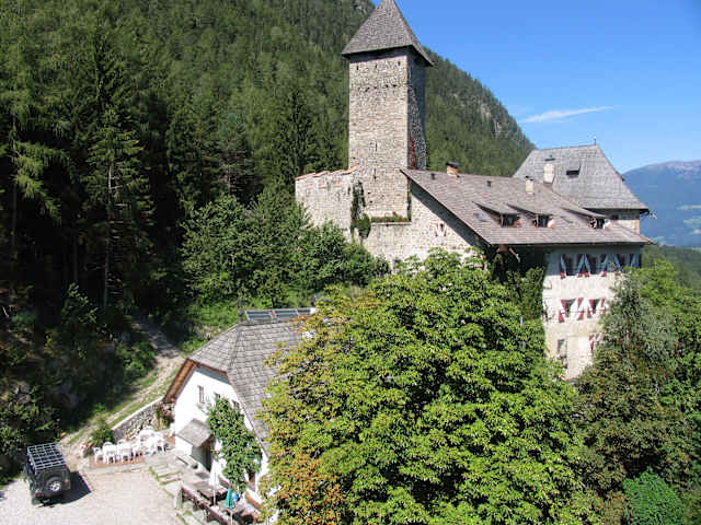 Im Hotel Schloss Neuhaus befindet sich, in mittelalterlichem Gemäuer, das Hotelrestaurant. Es besteht aus zwei Stuben, urig holzgetäfelt, mit zahllosen Geweihen und Erinnerungsstücken an den Wänden. Das Restaurant wirkt urgemütlich und sehr einladend. Das Personal und, wenn anwesend, der Chef begrüßen und bedienen herzlich und unkompliziert. Auf der Karte stehen typische Südtiroler Gerichte (Schlutznudeln, Forelle und Wild aus eigenem Fang usw.). Was sich einfach anhört schmeckt wunderbar und ist aus unserer Einschätzung von bester Qualität. Aber Achtung: Die Mengen sind ebenfalls landestypisch, d. h. es wird niemand hungrig vom Tisch gehen, außer er heißt Goliath... Nach Wein am besten das Personal fragen, wir haben keine Karte gesehen, wurden aber gut bedient. Vorsicht ist bei An- und Abfahrt geboten. Der Weg führt durch den Wald und ähnelt eher einem ausgetrockneten Gebirgsbach. Nichts für tiefer gelegte Fahrzeuge ;-))