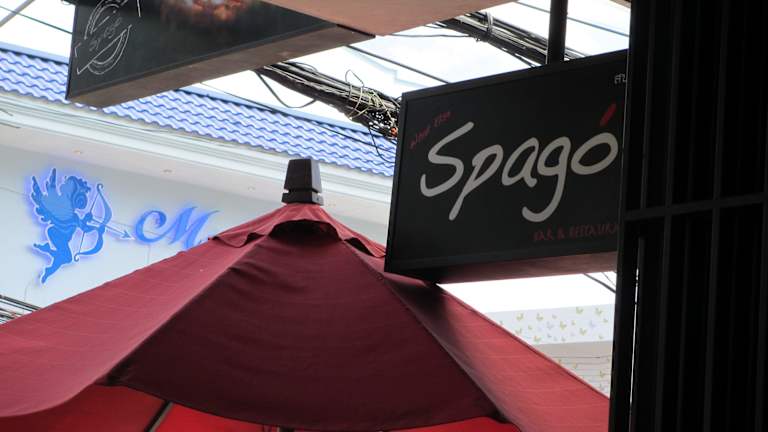 Das Spago ist ein Mix aus Bar und Restaurant - liegt mittig von Chaweng direkt an der Chawengbeachroad auf der rechten Seite (etwas unterhalb der Soi Green Mango).....Nach außen hin ist das Lokal offen - d.h. man sitzt direkt mit Blick auf das "Treiben der Straße" und ist somit ein "Viewpoint" in Chaweng geworden...das Lokal hat auch noch ein oberes Stockwerk mit normalen Tischen - unten mit Bartheke und Korbsesseln..... Die Speise- und Getränkekarte ist gut ausgewählt - verschiedene Cocktails, Shakes etc. sowie Thaifood und andere Snacks....preislich angemessen, jedoch etwas höher als in den üblichen Lokalen....