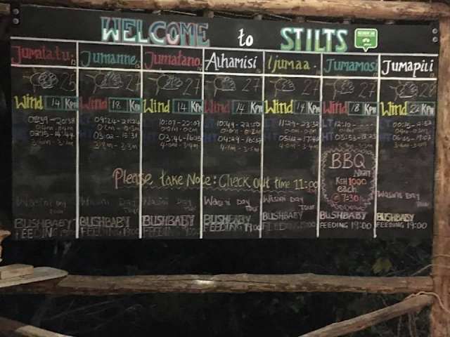 Das Stifts liegt direkt in der Nähe des Hotels "Diani Sea Lodge" (ca. 400 m in Richtung Ukunda auf der linken Seite). Hier kann man in einem Baumhaus gemütlich ein Bier trinken. Eine kleine Speisekarte ist auch vorhanden. Ab 19.00 Uhr kommen hier Bushbabys vorbei und naschen gerne Bananen im Restaurant. Sie lassen sich ohne weiteres füttern. Das ist sehenswert.