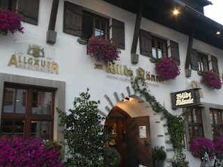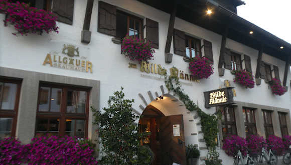 An einem schönen, warmen Augustabend 2023 gingen wir in Oberstdorf zum Abendessen zum Restaurant „Zum Wilde Männle“ in der Oststraße 15. Der große Biergarten war gut besucht, jedoch fanden wir noch einen Tisch im hinteren Bereich des Biergartens. Auf der Speisekarte stehen überwiegend Gerichte der bayerischen / alpenländischen Küche. Ich entschied mit für einen Schweinebraten mit Kartoffelknödel und Blaukraut. Es hat uns hier beim Wilde Männle gut gefallen und auch gut geschmeckt.
