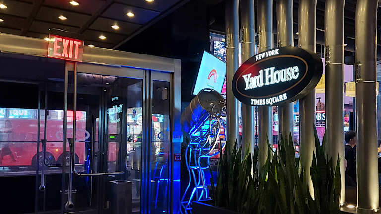 Das Yard House in Manhattan bietet über 100 gezapfte Biere und gepflegte amerikanische Küche. Es liegt fast am Times Square, also sehr zentral. Das Preis-Leistungs-Verhältnis ist für New Yorker Verhältnisse gut. Dadurch war der Andrang für einen Tisch auch im Februar sehr groß, eine Reservierung empfahl sich. Wir waren so begeistert von Bier, Essen (u.a. Burger, Chicken Wings), Bedienung und Lage, dass wir während unseres 8-tägigen Urlaubs mehrmals dort waren.