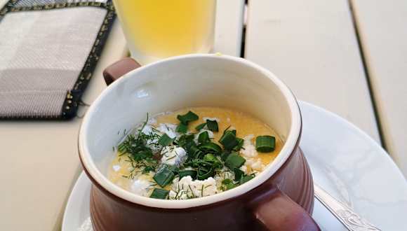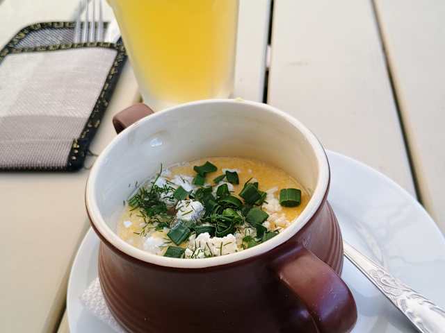 Es ist ein typisches kleines Restaurant, wie ein typisches Familienrestaurant in den südlichen Ländern. Eine Kellnerin, die wahrscheinlich auch die „Sous-Chefin“ des Restaurants ist. Die Speisekarte? Typisch ukrainisch. Nichts Ausgefallenes, aber gute Portionen und lecker. Wenn Sie dort sind, sollten Sie den ukrainischen Borschtsch und auch den Karpaten-Banosh probieren: ein Gericht aus lokalem Käse. Ein großes Minus: Es gibt kein ukrainisches Bier.