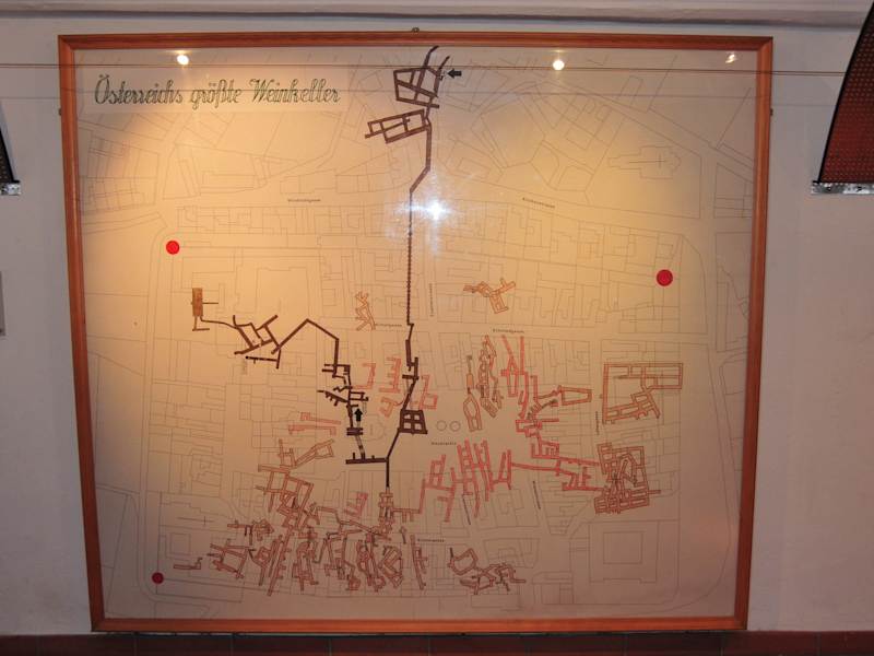 In Retz gibt es den grössten historischen Weinkeller von Österreich . Schon vor mehr als 700 Jahren lagerten die Bürger ihren Rebensaft in Kellerröhren ein,welche einfach in den Quarzsand gegraben wurden. Heute wird der Keller nur noch von Weinbauern genutzt. Unter der Stadt ist ein richtiges Labyrinth, viele der Keller waren miteinander verbunden. Die gesamte Anlage ist angeblich ca. 20 km lang und stellenweise 20 Meter tief. Geschäftstüchtig wie die Retzer sind, haben sie einen Teil davon zum Erlebnisskeller ausgebaut . Dieser kann ausschliesslich geführt auch besichtigt werden. Diverse Darstellungen sollen vermitteln, wie lange Wein schon gekeltert und getrunken wird. Die Führung dauert ca. 50 Minuten und endet in einer Vinothek, wo der Wein auch verkostet (und gekauft) werden kann.