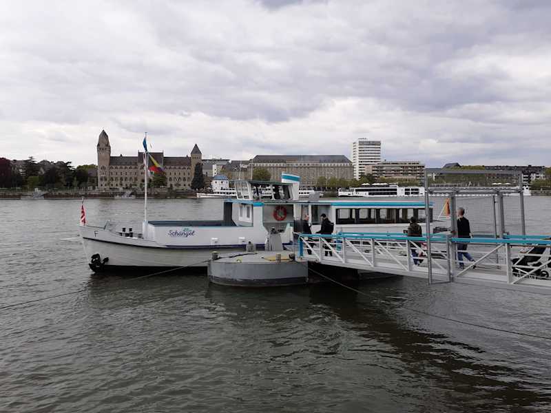 Wenn man als Fußgänger von der Altstadt Koblenz nach Ehrenbreitstein am anderen Rheinufer möchte, kann man die Personenfähre, die linksrheinisch ihren Anleger vor dem Preußischen Regierungsgebäude hat, direkt neben dem Pegelhaus.