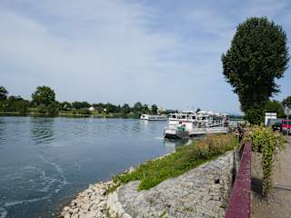 Die gesamte Rheinuferpromenade in Breisach kann genutzt werden,sie geht von der Josef Bueb Str. am Minigolfplatz bzw. am Schwanenweiher los und führt zunächst am Yachthafen vorbei und am früheren Fischerhafen, auch Hafen genannt. Dort ist ein Parkplatz, ein öffentliches WC sowie eine schöne Aussicht. Es geht dann weiter in Richtung Rhein, dann beginnen die Plätze am Rhein für die langen Fahrgastkreuzschiffe. Hier liegen in der Zeit von März / April bis Oktober manchmal bis zu 3 Schiffen nebeneinander. Breisach ist Haltepunkt für die Besichtigung der Stadt im Elsass, genannt Colmar. An den Fahrgastschiffen halten dann die Autobusse für die Gäste die nach Colmar oder nach Freiburg/ Breisgau gebucht haben. Für die Besichtigung nach Colmar fahren diese Busse schon sehr früh los, denn das Schiff will in der Zeit ab 13.°° Uhr weiterfahren, so lese ich das in den Werbekatalogen. Diese mittelalterliche Stadt hat so viele äusserst interessante Sehenswürdigkeiten, das kann niemand an einem Tag besichtigen. Aber erschwerend kommt noch hinzu, das tolle Unterlinden-Museum, hat noch den weltweit bekannten Isenheimer Altar im Angebot. Ich habe da einen TIP : Besichtigen sie die Stadt Breisach, dazu ruft man die Touriinfo in Breisach an Nr. +497667940155 , diese bestellen wahrscheinlich gerne ein Taxi, welches zu den vielen Sehenswürdigkeiten hinfahren, damit sie in Ruhe sich alles anschauen können, zum Abschluss noch einen Besuch im Café Ihringer und der Tag ist gerettet.