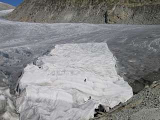 Der Rhône Gletscher ist unterhalb der Furkapasshöhe Richtung Wallis. Er ist eindrücklich, jedoch ist er in diesem Jahr wiederum beträchtlich zurückgegangen. Es hat eine Eisgrotte im Gletscher und man kann auf dem Bild sehen wo die Grotte ist - im abgedeckten Teil des Gletschers verläufte die Grotte. Den Rückgang des Gletschers ist anhand der Bilder vom 2006, 2008 und meinem Bild vom 2011 klar ersichtlich.