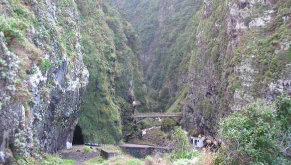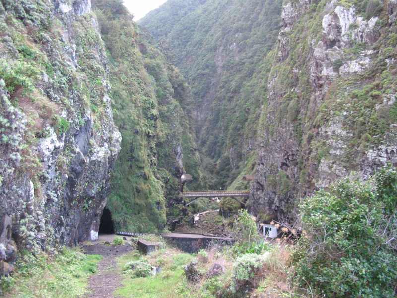 Ende Oktober waren so schwere Gewitterstürme, dass wir zunächst eine Zwischenlandung auf Porto Santo machen mussten, ehe wir abends auf Madeira ankamen. Am nächsten Morgen konnten wir die Ausmaße der Sturmschäden sehen. Die alte Straße an der Nordküste (Einbahnstraße) zwischen Sao Vicente und Seixal war wegen eines schweren Verkehrsunfalles abgesperrt. Als die Straße nach einer Woche immer noch nicht geöffnet hatte, haben wir unseren Mietwagen an der Absperrung abgestellt und sind einen Teil der spektakulären (!) Strecke zu Fuß gegangen. Am neuen Tunnel in der Schlucht konnten wir sehen, dass es außer der neuen und der alten Straße sogar noch einen ganz alten Weg gab. Die Schlucht ist beeindruckend. Aber auch die von den Madeirensers normalerweise als Autowaschanlage benutzte alte Straße!