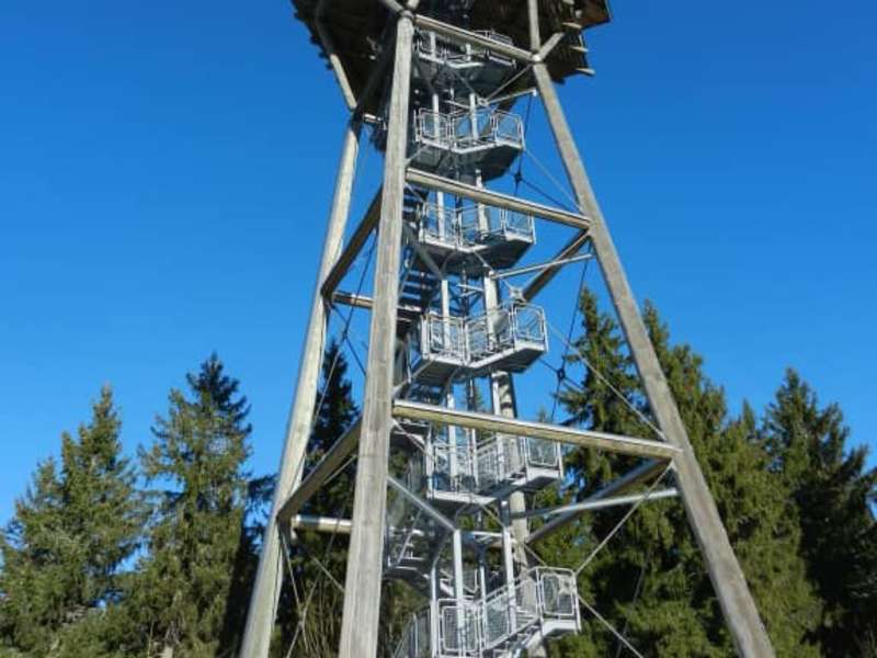 Der Aufstieg zum Riesenbühlturm wird mit einem weitläufigen Blick in die idyllische Umgebung belohnt. Genießen Sie die Sicht auf den Schluchsee sowie die Alpen. Verfasst von HolidayCheck
