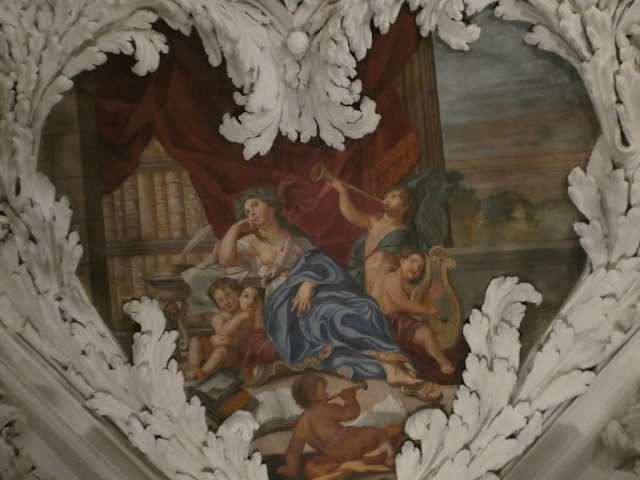 Der herausragende Raum in Schloss Ehrenburg ist der sogenannte Riesensaal mit seinen 28 Atlanten, jenen überlebensgroßen, männlichen muskulösen Figuren, die hier auf ihren Schultern die Dachkonstruktion tragen. Zudem sind im Riesensaal unterhalb der Decke 56 Wappen aus dem Einflußbereich der Wettiner, aus denen die Linie derer von Sachsen-Coburg stammt. Außerdem sind oben an der Decke herrliche Deckengemälde angebracht. Wir waren am Tag bei einer schönen Schlossführung im Riesensaal und dann nochmals am Abend zu einem wunderbaren Konzert im Rahmen der Coburger Museumsnacht.