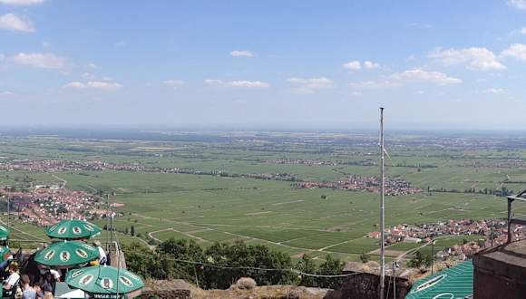 herrliches 180° Panorama über die Südpfalz, mit Sicht im Osten bis über den Rhein hinaus, im Süden fast bis zu den Nord-Vogesen. Burg-Restaurant mit schöner Panorama-Terasse. Wer den Weg nicht zu Fuß machen will läßt sich bequem in einer 8 minütigen Fahrt mit dem Sessel-Lift nach oben transportieren. Für Kinder gibt es ein kleines Damwild-Gehege mit sehr zutraulichen und immer hungrigen Tieren unmittelbar neben der Burg. Geeignetes Futter gibt es an der Bergstation des Sessel-Lifts zu kaufen.