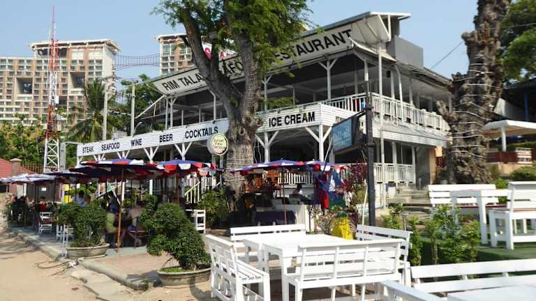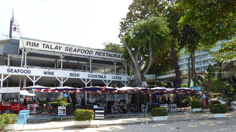 Das Rim Talay liegt im Norden von Pattaya im Stadtteil Naklua, Naklua Rd. Soi 18 (auch Soi Wong Amat genannt) direkt am Wong Amat Beach. Das Restaurant verfügt zudem über zwei große Terrassen, Bar und eine Chill-out Zone. Die Auswahl an frischen Fischen und Meeresfrüchten ist riesig, ebenso die Steak- und Pizzaauswahl. Aber wer geht schon in ein Seafood Restaurant und bestellt sich Steak oder Pizza, dafür gibt es bessere Lokalitäten. Die Qualität ist überzeugend und das PLV stimmt. Gegen extra gibt es auch Nachtisch, Eis, Kaffe und Kuchen. Der Service ist Aufmerksam, höflich und freundlich, jedoch sollte man beim begleichen der Rechnung ein Augenmerk auf diese richten. Die phantastische Lage direkt am Meer wird etwas getrübt durch das daneben befindliche Rückhaltebecken für die Kanalisation, was bei bestimmten Wetter leichte Düfte verbreitet, eigentlich Schade.