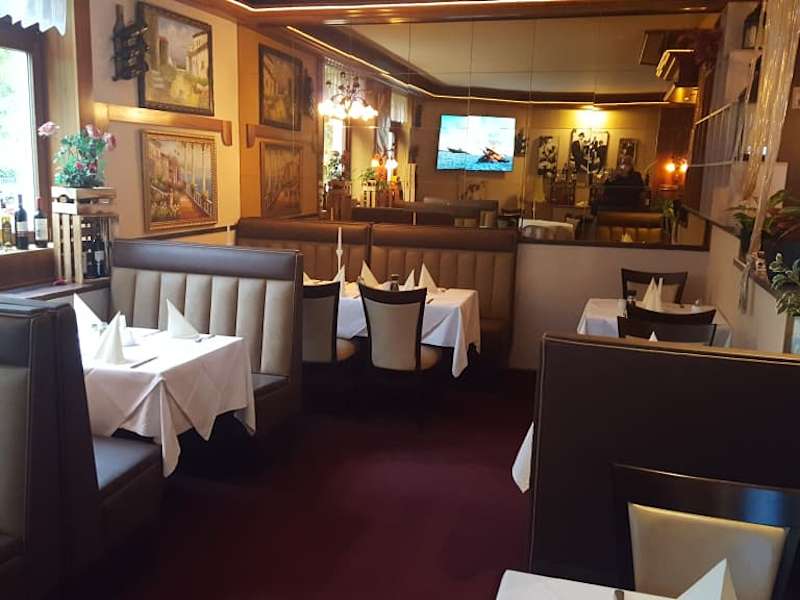 Padre e figlia non conoscono i classici italiani- so könnte man den Namen hier ergänzen... am Bhf Hermsdorf gelegen in einer alten Villa mit großem Außenbereich...dieser müßte aber mehr Aufmerksamkeit bekommen- der Gast betritt durch ebendiesen den Gastraum... tgl. Laubfegen könnte schon mal helfen... im Gastraum dann ein gemisch aus Holzarten an Wänden, Türen und Mobiliar welche nicht sehr gut miteinander harmonieren... Teppiche und Polster verstärken die Unruhe für die Augen noch- alles paßt irgendwie nicht- dazu eine wilde Deko aus Bildern, Pflanzen und Groß- TV´s- Wohlfühlatmosphäre geht anders... der Laden war proppevoll und so konnte der Service zeigen was er konnte- nun ja- gekonnt hätte vielleicht- der junge Mann war irgendwie "lost anywhere"...niemals unfreundlich aber sehr "Kopflos"... 2 große Flaschen San Pellegrino kamen nebst Gläsern auf den Tisch- das war´s mit Service- do it yourself... dann kam pro Gast ein Bruschetta- ein Klassiker der Italienischen Küche- hier wußte man nicht wie es wirklich geht- einfache, geschmacksneutrale Tomate, etwas Knoblauch, Zwiebeln und Öl reichen halt nicht für einen Genuß- zumal auf total durchweichten Brotscheiben... Vitello Tonnato...: sehr trockenes Fleisch kombiniert mit einer ungewürzten Sahne- Thunfischsosse- ein eher "wässeriges" Geschmaclserlebniss... Carpaccio...: war das was es sein sollte- mehr nicht...die "Spezialsauce" konnte ihr "Spezial" nicht an den Gaumen des Gastes weiterleiten... Spaghetti Aglio Olio/ Penne Matriciana...: diese Klassiker werden von jeder Italienischen Mama grandios beherrscht- aber hier das Problem- der Laden heißt "Padre E Figlia"... Nudeln ohne Salz gekocht da könnte auch eine gute Sosse nicht mehr viel retten- aber davon sind wir hier weit entfernt...Tomatensosse ohne gute Grundprodukte funktioniert nun mal nicht- eher wässerig und ohne die leichte süsse einer guten Tomatensosse- von Schärfe keine Spur...auch der Bauchspeck kam sehr Geschmacksneutral daher... und wo man Öl und Knoblauch ohne Geschmack kauft weiß wohl nur der Padre, oder doch die Figlia...? das bei den Aglio e Olio extra Garnelen dabei waren ist schon mal gelungen- diese aber ohne jede Würze durch die Pfanne zu ziehen- starke Leistung...! jetzt noch die Pizza...: die war das beste am Tage... Steinofen gebacken und geschmacklich gut... Bistecca Fabbro...: diesem Gericht verweigere ich jede weitere Anmerkung und lasse das Bild für sich sprechen...grausame Tellersprache und dazu eine 70er Jahre Orangenscheibe als Deko- Kulinarischer Bankrott...! nein, auch dieses Ristorante wird die Gastronomische Diaspora im Norden Berlin´s nicht beenden können...suchen wir weiter...