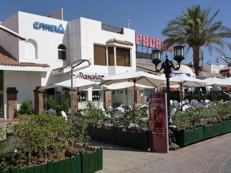 Das Pomodoro Restaurant ist im Zentrum der Na'ama Bay und im Taucherhotel "Camel" integriert. Hier lässt es sich wunderbar auf der Aussenterrasse, mit Blick auf die Fußgängerzone, dinieren, aber auch eine gute Lunchkarte ist vorhanden. Auf der Speisekarte sind diverse Pizzen, Nudelgerichte, Salate, aber auch ein paar typische ägyptische Gerichte zu finden. Ausnahmslos sind die Speisen lecker und gut verträglich. Die Preise liegen etwas unter dem Niveau in Deutschland, allerdings ist der Wein schon etwas hochpreisiger. Auch der Ägyptische.