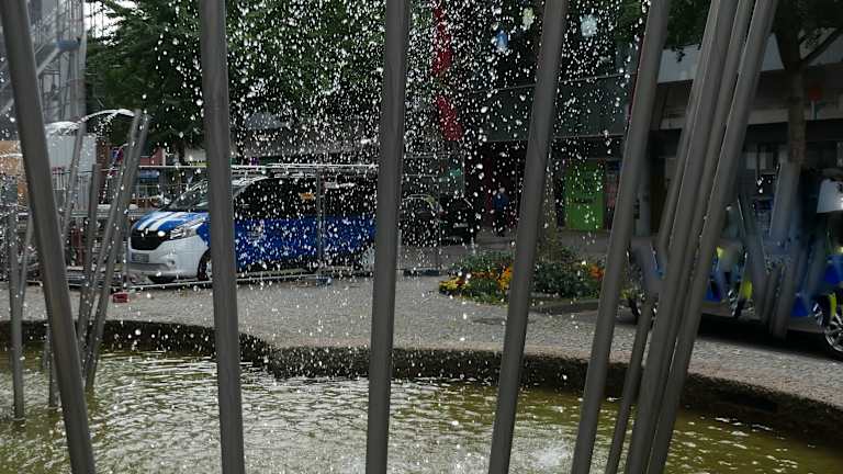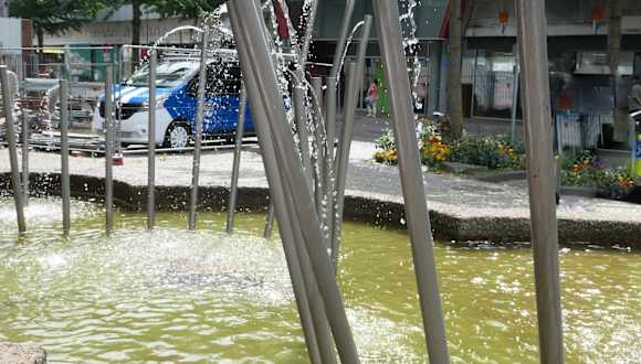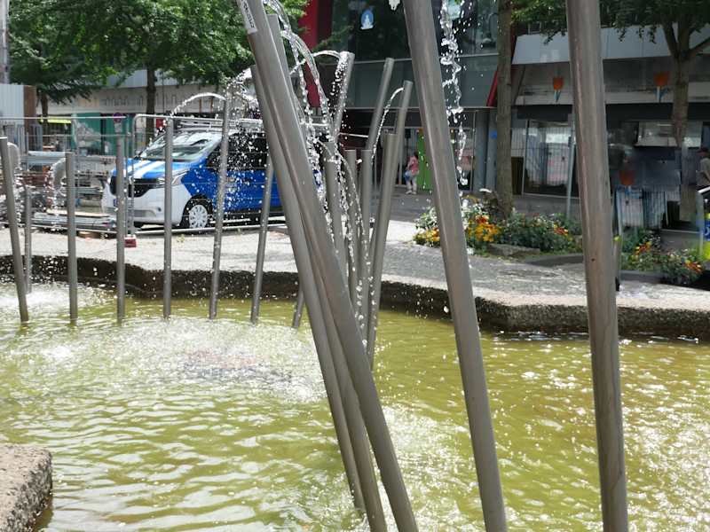 Brunnen mit unterschiedlich hohen Röhren
