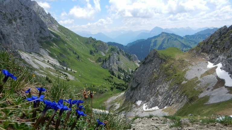 Andre hat ansonsten alles toll beschrieben, es ist eben alles im Tannheimer Tal in Österreich. Als Alternative für den Abstieg kann man von der Rote Flüh über den Weg 424 zur Gelben Scharte absteigen und dann den Friedberger Klettersteig auf den Schartschrofen (1968 hm) klettern. Der Klettersteig ist nicht sonderlich schwer, man sollte aber dennoch unbedingt Helm, Gurt und Klettersteigset mitnehmen. Schwindelfreiheit und Trittsicherheit ist selbstverständlich. Vom Schartschrofen dann auf dem Weg 413 über Haller Schrofen und Adlerhorst zurück zu Parkplatz am Nesselwängle.