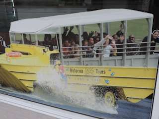 Rotorua Duck Tours ist ein Unternehmen, was mit 2 Amphibien Fahrzeugen Touren in die umliegenden Seen anbietet. Die Fahrzeuge sind Baujahr 1942, waren also schon im 2. Weltkrieg im Einsatz. Die Touren beginnen in der City und dauern 90 bis 105 Minuten ( City und Lake Rotorua ) oder 120 Minuten Tarawera und Lakes Tour. Kosten 69 und 89 NZ Dollar, es macht Spaß mit diesen alten Fahrzeugen zu fahren und über die Seen zu schwimmen. Man sieht viel Natur, von der es in Neuseeland reichlich gibt.
